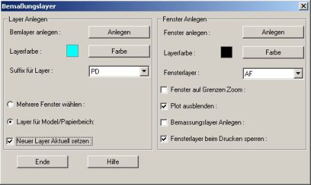 Legt spezielle Layer für die Bemaßung an. |